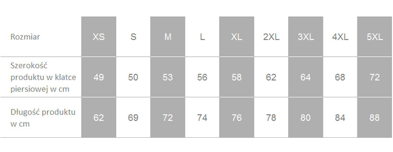 100% bawełna, gramatura 190 g/m2, tabela rozmiarów